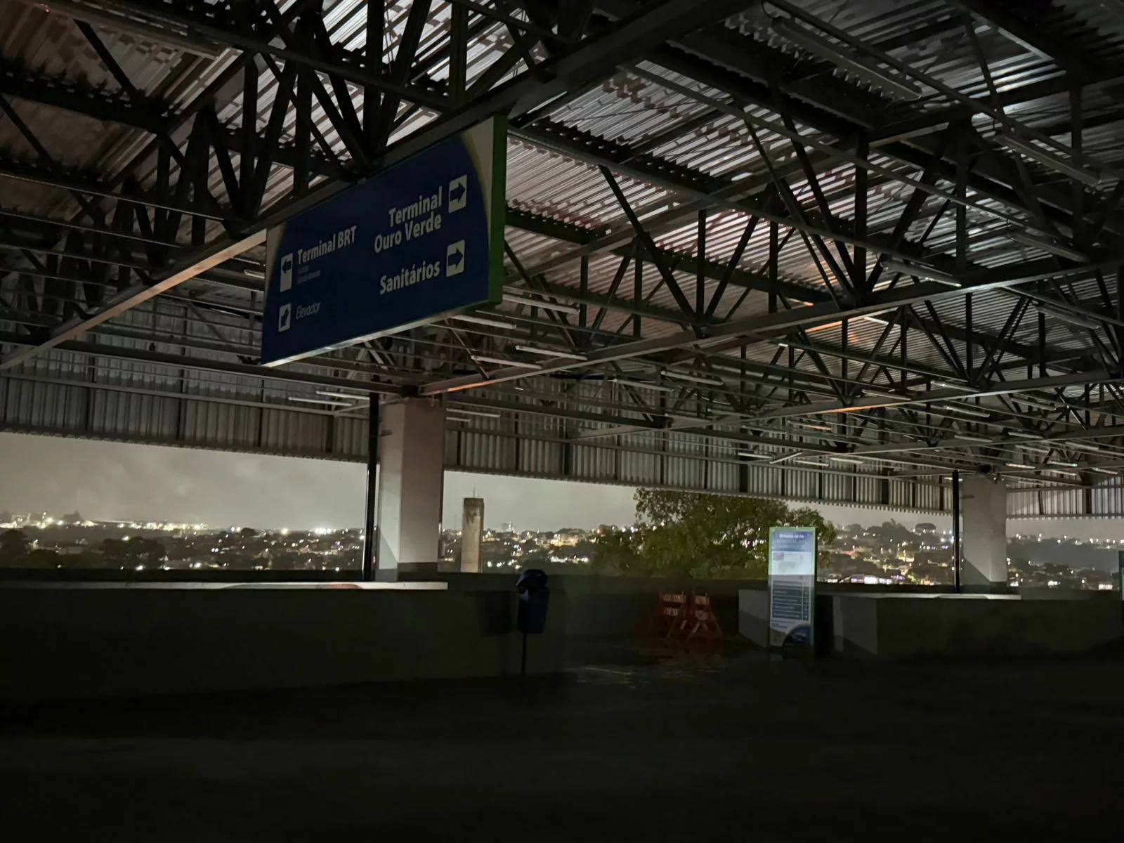 Na estação do BRT no Terminal Ouro Verde, o sistema elétrico está simplesmente caindo aos pedaços. Depois da chuva forte de terça-feira, tudo ficou no escuro.